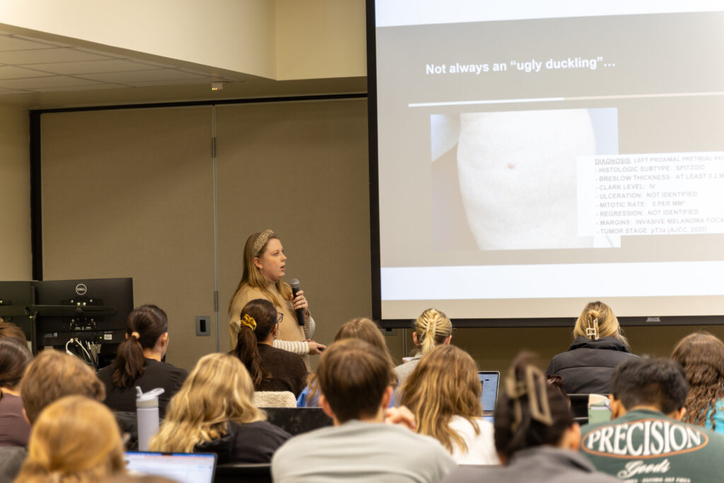 During the lecture, Amber shared a real-world perspective as a practicing physician assistant on the diagnosis and treatment of common and complex skin cancers. Topics included squamous cell carcinoma, basal cell carcinoma, melanoma, and the rare but aggressive Merkel cell carcinoma.